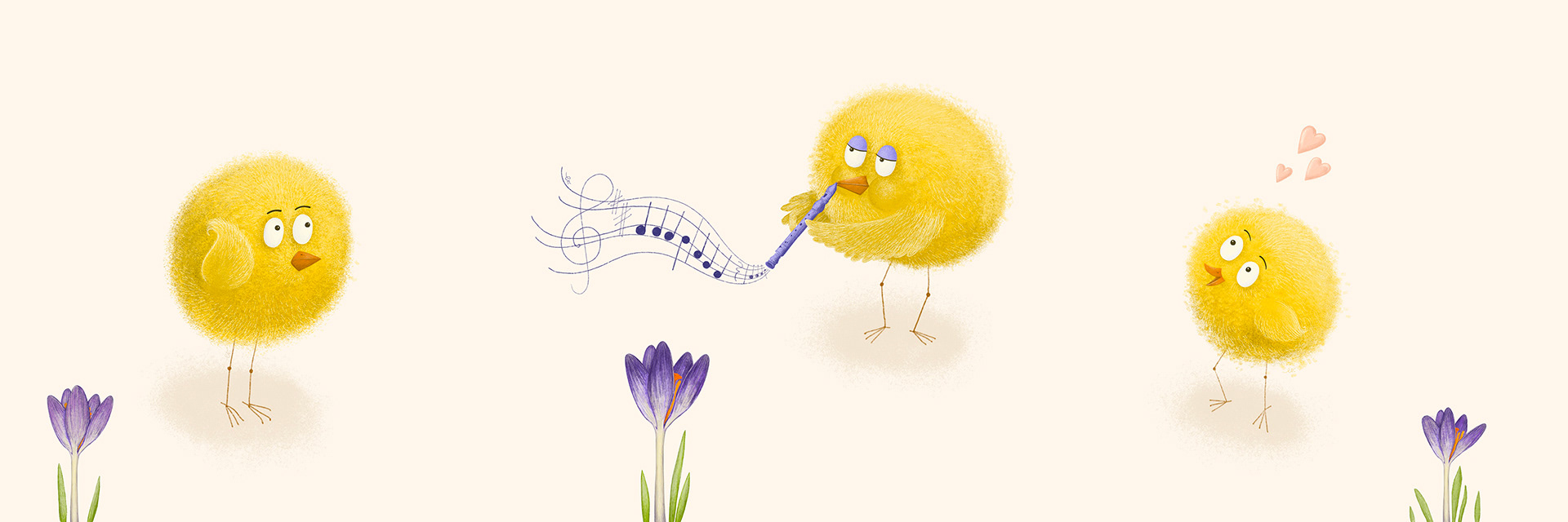 Spring theme illustration - Baby chicks and crocuses / Eva Hlaváčová 2023 ©